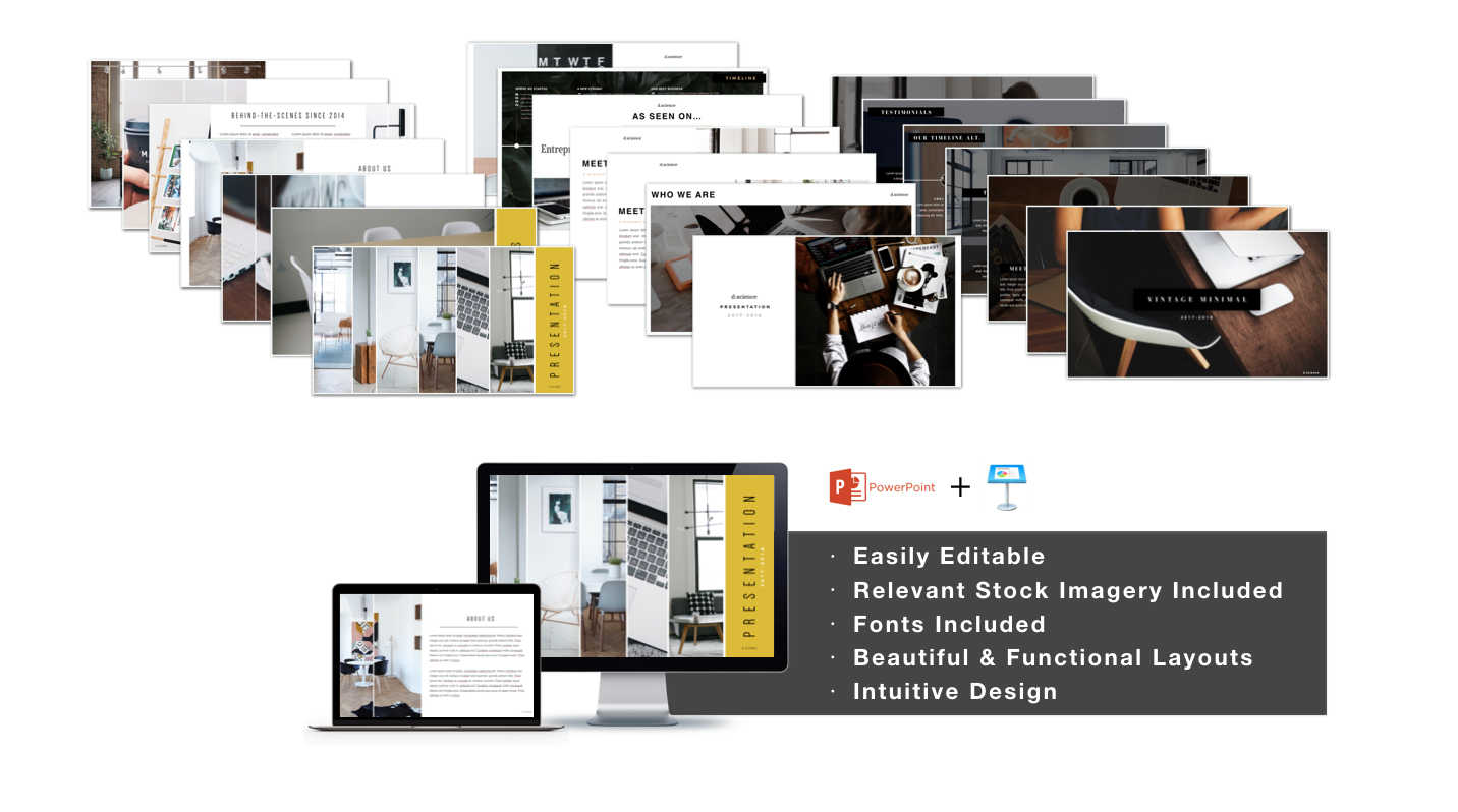 Whip your next project, idea, or corporate guide into shape with easy keynote and powerpoint templates that you can edit yourself.