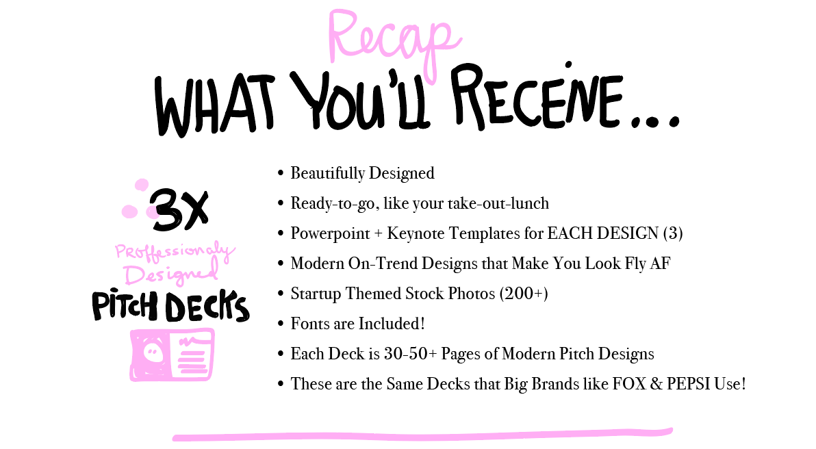 Startups and entrepreneurs can get the same resources as these big corporations, but rather than pay Emelina upwards of over $1500 per deck, you’ll pay a freakin’ fraction of that cost and you’ll get an entire bundle—cause that’s how we roll!